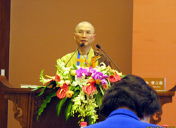 發言時,近梵師特別強調了宣公上人的四大志願:「建立僧團、翻譯經典、提倡教育、宗教交流」,並配合學生的活動照片,讓與會者留下深刻印象,會後幾位法師私下都表示了他們對上人的景仰與崇敬之意。