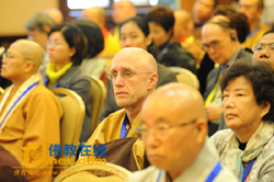 下午兩點半至六點半繼續「大會發言」。法總係首次參加世界佛教論壇,但主辦單位非常禮遇,特別安排實法師坐於貴賓席上,並主持第五梯次的大會發言。實法師一口流利的中文,讓很多與會者及義工既訝異又讚歎。實法師在此次論壇常常是攝影記者鏡頭的焦點,在入場歡迎式時,鳳凰衛視的第一個鏡頭就是對準著實法師,難怪上海的居士事後說他們在電視上一眼就看到了法總的代表。