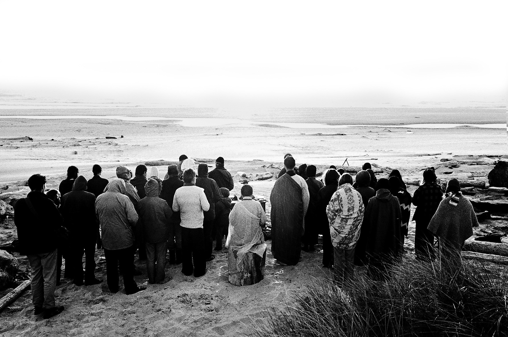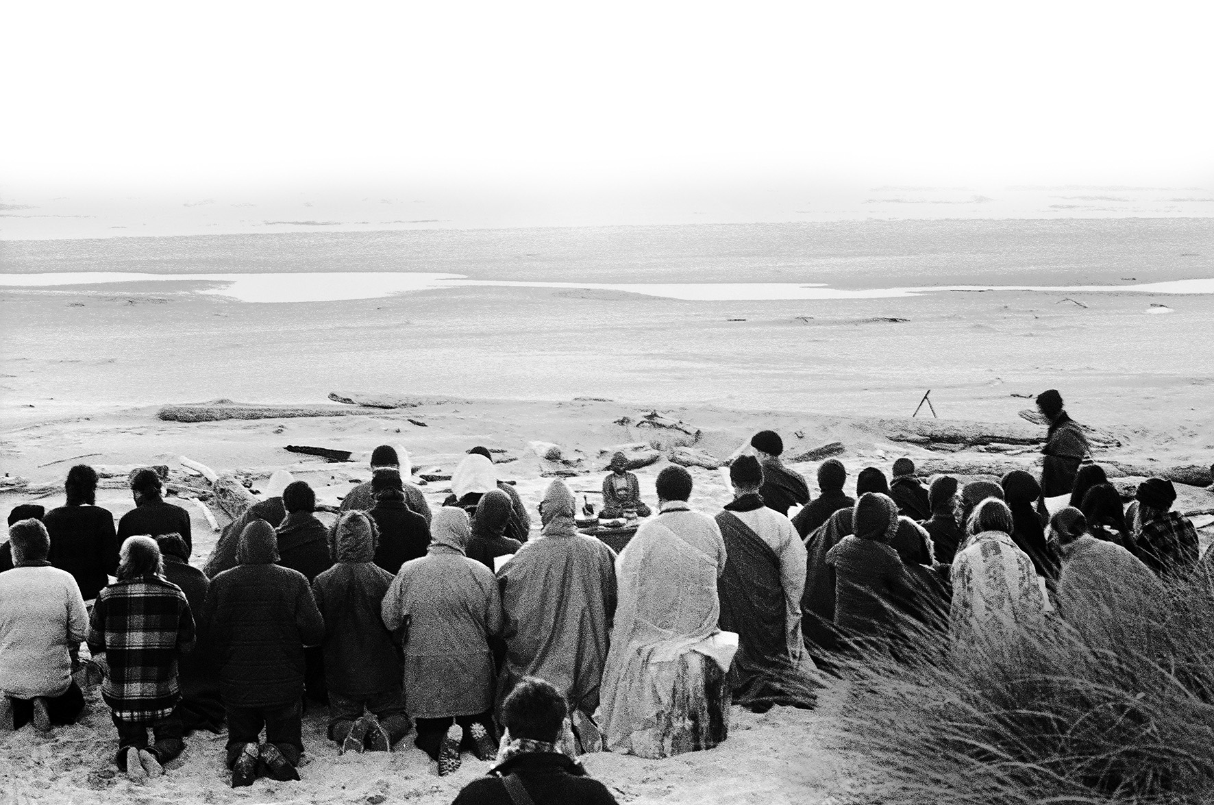 法會圓滿日大衆驅車至海邊,在夕陽下的沙丘上,朝向太平洋的西方彌陀淨土作大迴向。