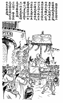 The Emperor then bestowed upon the Master a set of Imperial Tripitaka, a complete Imperial carriage, as well as a purple robe, a bowl, a jade seal, a tin staff, and an as-you-will sceptre.