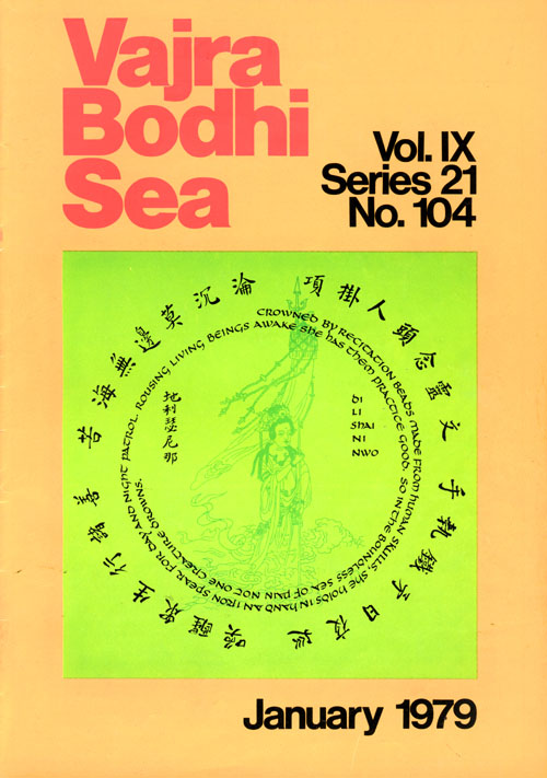 VAJRA BODHI SEAJanuary, 1979 Mahayana 3004 Volume IX - Series 21 - NO.104 |