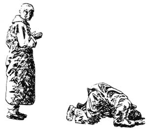 Landing, CA Dear Shih Fu, At the end of the day, a man in a van stopped. He said, "I've been watching you. I figure you're trying to make atonement for the sins of man. Why don't you join the Peace Corps or help the poor? Oh well...you're doing your thing, I guess." On the surface it might look like cultivation is just "doing your thing," but it's really everybody's "thing." Why is there war and suffering in the world? Because I am selfish and can't put down my "always more" desire mind. Why is there poverty and injustice? It's also because of my false thoughts of greed, anger, and ignorance. All the hassles and problems we share begin in the mind. If I don't clean up my own mind and end the war inside my own heart, how can I possibly help the world? Reducing desire is getting rid of wars. Stopping false thinking is really helping the world. Small worlds, just these are large worlds; large worlds are nothing but small worlds. An inexpressible number of worlds enters into a single world; a single world enters into an inexpressible number of worlds. -Avatamsaka My small world of greed enters into the big greed in the world. My small anger and ignorance feeds the larger worlds of hatred and stupidity. How is the large world going to change if I don't change my small world? It's all woven together. If I hold precepts purely, then there's a small world of good that can "enter into an inexpressible number of worlds." My small concentration adds to the big peace. If I can cultivate wisdom, then there's that much more light in the world. Small worlds and big worlds fuse and interpenetrate by themselves. If I go towards the good, then the good in the world increases naturally. If I don't recognize and change my faults, this bad energy pollutes the world in the same way and touches everyone and everything without my knowing it. Cultivation is for everyone and all the worlds to the limits of empty space. I didn't always see it this way. Last week a young family near Tomales put me back in touch with some parts of my life that I hadn't seen clearly before. The family lives on a small farm in a little valley. The vibes are good and basic. With their four children they raise most of their own food. They have gone "back to the earth," living naturally with traditional values and morality. Everything about their lives and home says, "With few desires, know contentment." They made an offering of food and water as we bowed by and said, "Thank you." Everyone was healthy, happy, and simple. Their blessings were obvious and abundant. Blessing retribution like this comes from good roots planted in the past. People whose lives are happy and free of disasters and distress held the moral precepts in the past. Healthy, loyal children, the absence of enemies, and a peaceful mind come from having cultivated the Paramitas of giving, morality, patience, vigor, concentration, and wisdom. Like causes, like results. Everything that happens to you is the fruit of seeds planted in the past. Tomorrow is being set up today. All retribution is born of karma. -Avatamsaka This happy, "rich" family led me to reflect on my own roots and blessings. I came from a good family and had many blessings. I might have ended up much like this family, but I got turned by greedy desire. I took a wrong road and nearly exhausted my blessings. If your good roots are deep and blessings many, you can leave the home-life and cultivate the Way. This is the highest field of blessings. It surpasses the best of worldly wealth and happiness. I passed by both. I turned away from chances to cultivate because I couldn't put down my mind for "more, always more." I straddled the fence until I nearly came apart at the seams. Clinging to greedy desire on one hand and trying to reach for the cultivation of wisdom on the other gave birth to a strange creature. This creature tried to end suffering with more suffering. He broke precepts, turned his back on his parents and teachers, drew near bad companions, and took it all lightly, like it was a game. He couldn't leave home and couldn't stay. So, indulging in hedonism, he mocked and mooched from the world. He sat in between the true and false, the pure and defiled, and took the worst from both—like tea steeped in lukewarm water. I couldn't see at the time that I was trying to get free by rebellion, license, and leisure. I put down and cut off morality, concentration, and wisdom and cultivated greed, hatred, and stupidity day and night, without fatigue. So, as we bowed down the road past this little farm, I thought of how I nearly wiped out my natural inheritance. I saw how wrong and selfish I had been. There was no one to blame but myself. And yet, here I was, happy and lucky, a Buddhist monk bowing with a good companion to the City of Ten Thousand Buddhas. How could this be? I think it's because no matter how bad one is, no matter how far from the true and proper you drift, a single act of goodness--a single thought of repentance and reform-can turn it all around and put you back in the Buddha's field of blessings. The Buddha's field of blessings levels all differences, voids and eradicates all affliction. It can cause all to be delighted and peaceful. With a single thought you can turn around and go back home. The Buddha's field of blessings doesn't come or go, I just neglect it. It doesn't reject anyone. Just as the earth is all one, yet it puts forth sprouts each according to the seed, and it does not prefer or reject any of them, so it is with the Buddha's field of blessings. -Avatamsaka If I don't understand things clearly, it's not because they are confusing, it's because my thinking is turbid, like murky water. If I cultivate for real, then the waters of my mind will naturally turn pure. I shouldn't worry or pretend or grab for things. Seeking more and running out for the biggest and the best just gets me lost and in trouble. I've always recited this "sutra": "more, more, always more," and got no satis