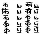 syllable In the alphabet, the fourteen Sanskrit vowels are written as full letters. Those large forms are only used when you write the letters by themselves, or when you write a word which begins with a vowel. Otherwise, after any consonant, you use the shortened forms shown below: