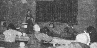 Shown here to the right of the Venerable Tripitaka Master Hua (center) is Upasaka S.S. Yu, and on his left Upasaka K.C. Pan. Both influential Buddhists from Brazil, they recently came to Gold Mountain to pay their respects to the Master and meet the Buddhist community of San Francisco. They are shown here being welcomed by some of the Sangha and laymen of the Sino-American Buddhist Association. Several years ago at the first major Buddha's birthday festivities to be held in America, among the many dignitaries and officials present was Luiz Dilormando do Castello Cruz, Consul in Charge of the Consulate General of Brazil at that time. |