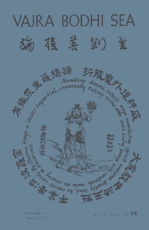 VAJRA BODHI SEA. A monthly journal of the orthodox Buddhadharma. Issued in July, 1977. Copyright c 1977 by the Sino-American Buddhist Association, Vajra Bodhi Sea Publication Society. ISSN 2434-2185