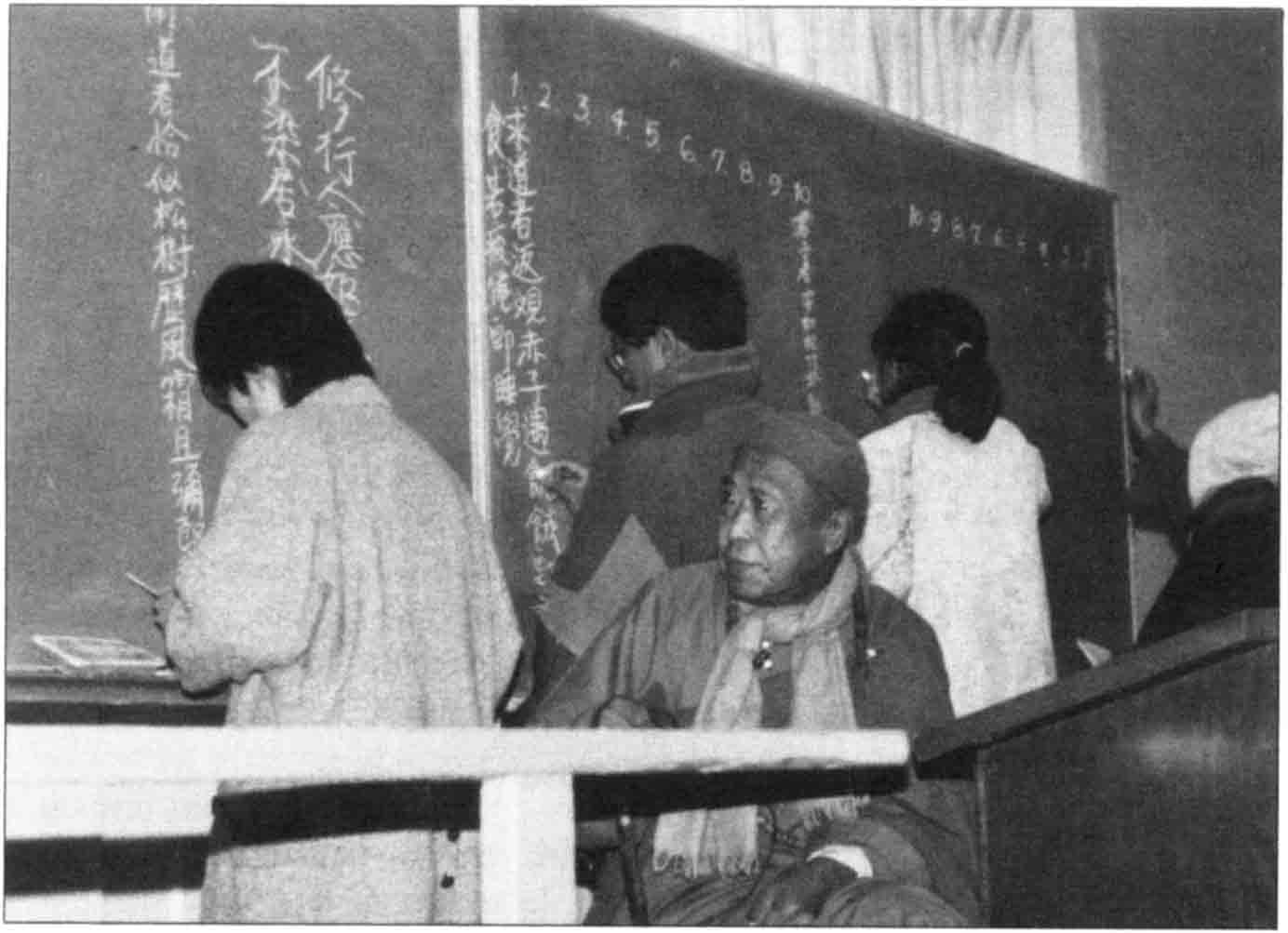 It wasn’t just in these classes that he had especially for students that he paid attention to children. He always treated the children like we were really worthwhile, and even when he gave classes for the adults, he encouraged the children to attend. For example in the matched couplets class that was held once or twice a week, he always encouraged us to write couplets. If we didn’t write couplets, he would notice. We thought we’d get away with it, but he’d call people out by name, “An An, Guo Tuo, did you write couplets?” Sometimes there were children who were too short to reach the board, so then he would say, “Don’t worry if you’re too short. I’ll put a chair up by the blackboard for you,” and he would—he’d bring up a chair and you’d have four-year-olds standing up there matching couplets! And he paid just as much attention to the little kids’ couplets as to the adults’.