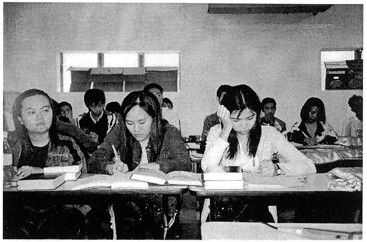 Shurangama Mantra, meditation, and community work. Each day ended with a Developing Inherent Wisdom session in which students made presentations on assigned Sutra texts in the Buddha Hall.