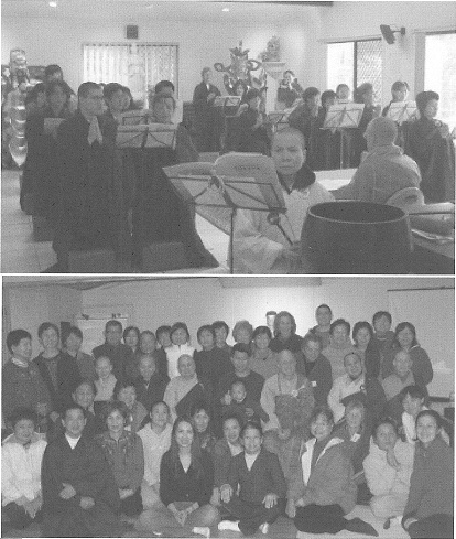 清早三點半,板響,隨之展開了一天的作息。穿著層層衣服,披著厚厚圍巾,大眾緩步進入佛殿。中、英語輪換的早課完畢後,念三遍楞嚴咒。法界佛教總會(法總)所有分支道場的每日功課差不多都是如此,只是這次很特別的是在澳洲。