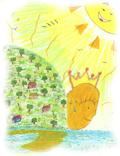 For the first time, the giant turtle realized that there were people living on his back. Not wanting to bring pain into their lives, he crawled back onto the beach.